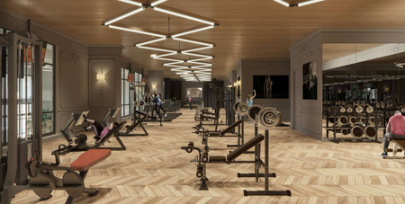 It features amenities such as a pool, spa, event room, barbecue area, and pet park.